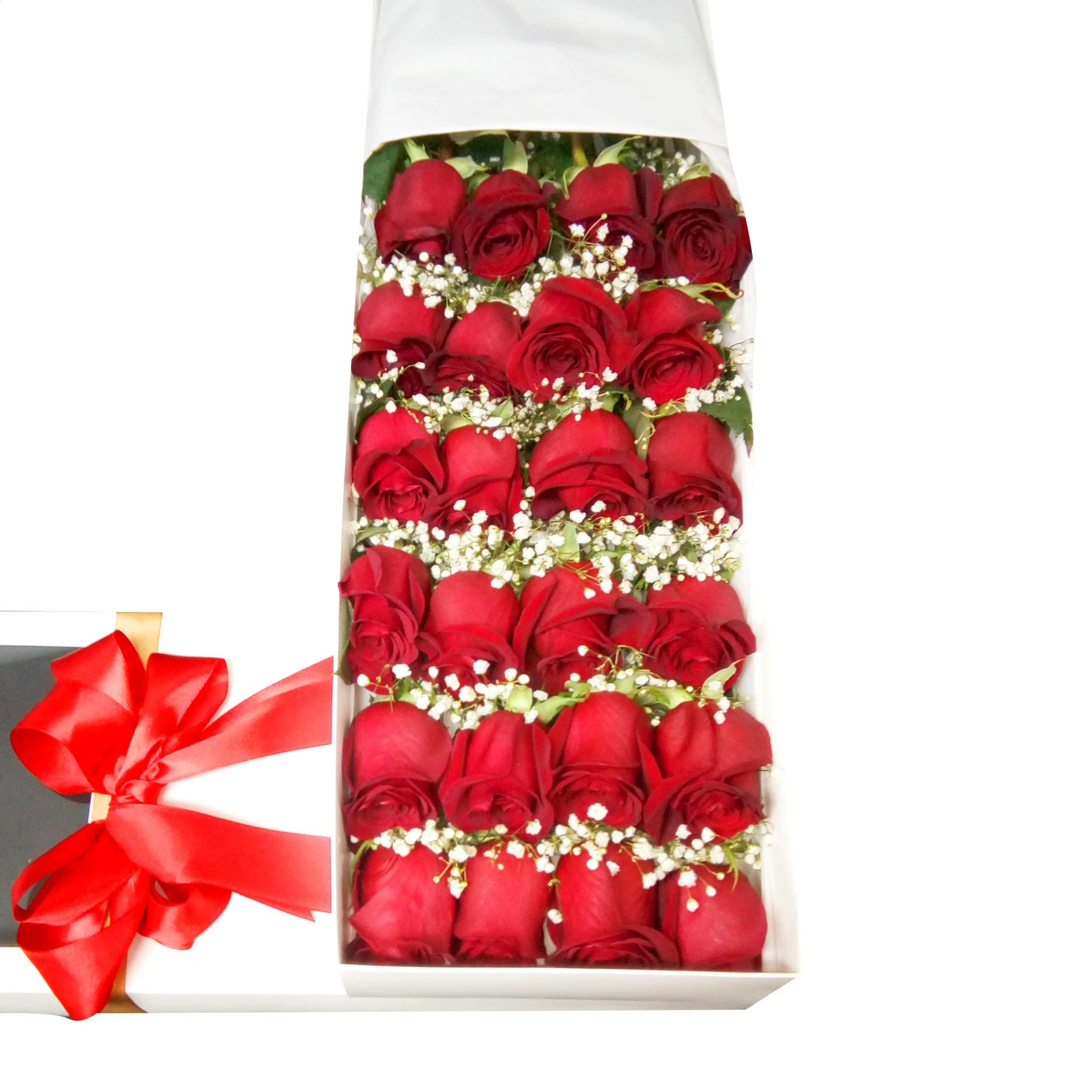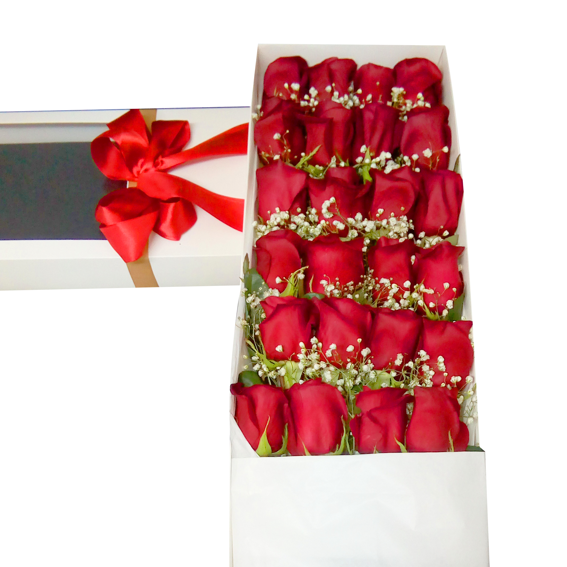 - Sorpréndela con esta espectacular caja de 24 bellas Rosas blanco Ecuatorianas con tallo largo desespinadas, acompañadas por 10 Gypsophilia. Cada Rosa va insertada en una bombilla con agua (Aquapick) para su hidratación y mantención durante el traslado, van envueltas en un fino y sedoso papel mantequilla, con un sachet de preservante floral para su durabilidad, un instructivo para el cuidado de las flores y un refinado sobre con una tarjeta para mensajes. La caja que abarca las Rosas son de elegantes terminaciones de cartón color blanco, sujetada con una hermosa cinta satín.
