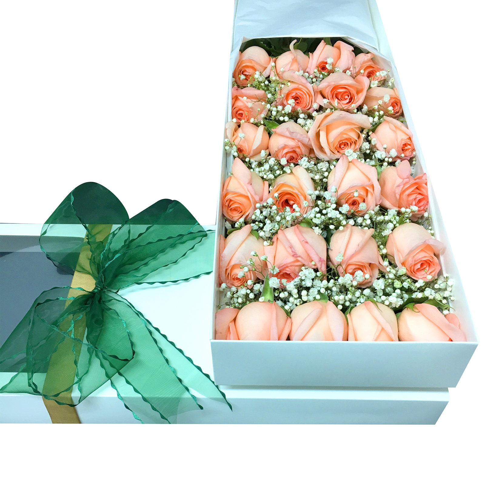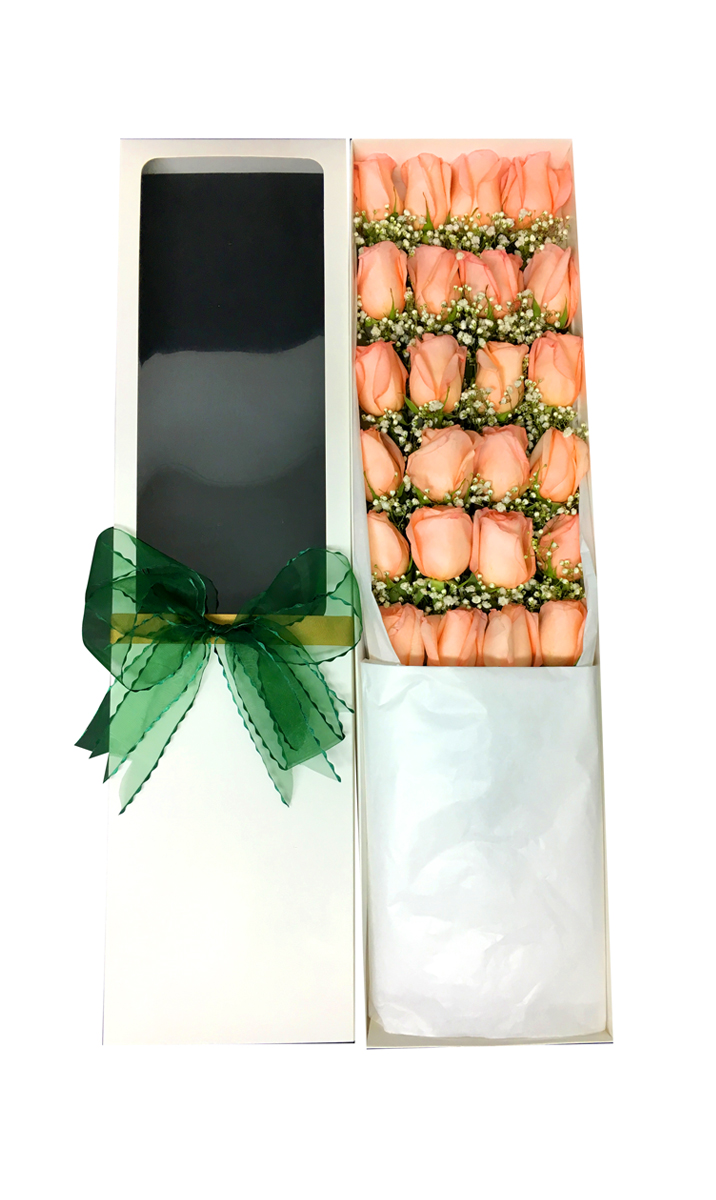 - Sorpréndela con esta espectacular caja de 24 bellas Rosas rosadas Ecuatorianas con tallo largo desespinadas, 1 vara de Gypsophilia para realzar su belleza, cada Rosa va insertada en una bombilla con agua (Aquapick) para su hidratación y mantención durante el traslado, van envueltas en un fino y sedoso papel mantequilla blanco, con un sachet de preservante floral para su durabilidad, un instructivo para el cuidado de las flores y un refinado sobre con una tarjeta para mensajes. La caja que abarca las Rosas son de elegantes terminaciones de cartón color blanco, sujetada con una hermosa cinta satín.