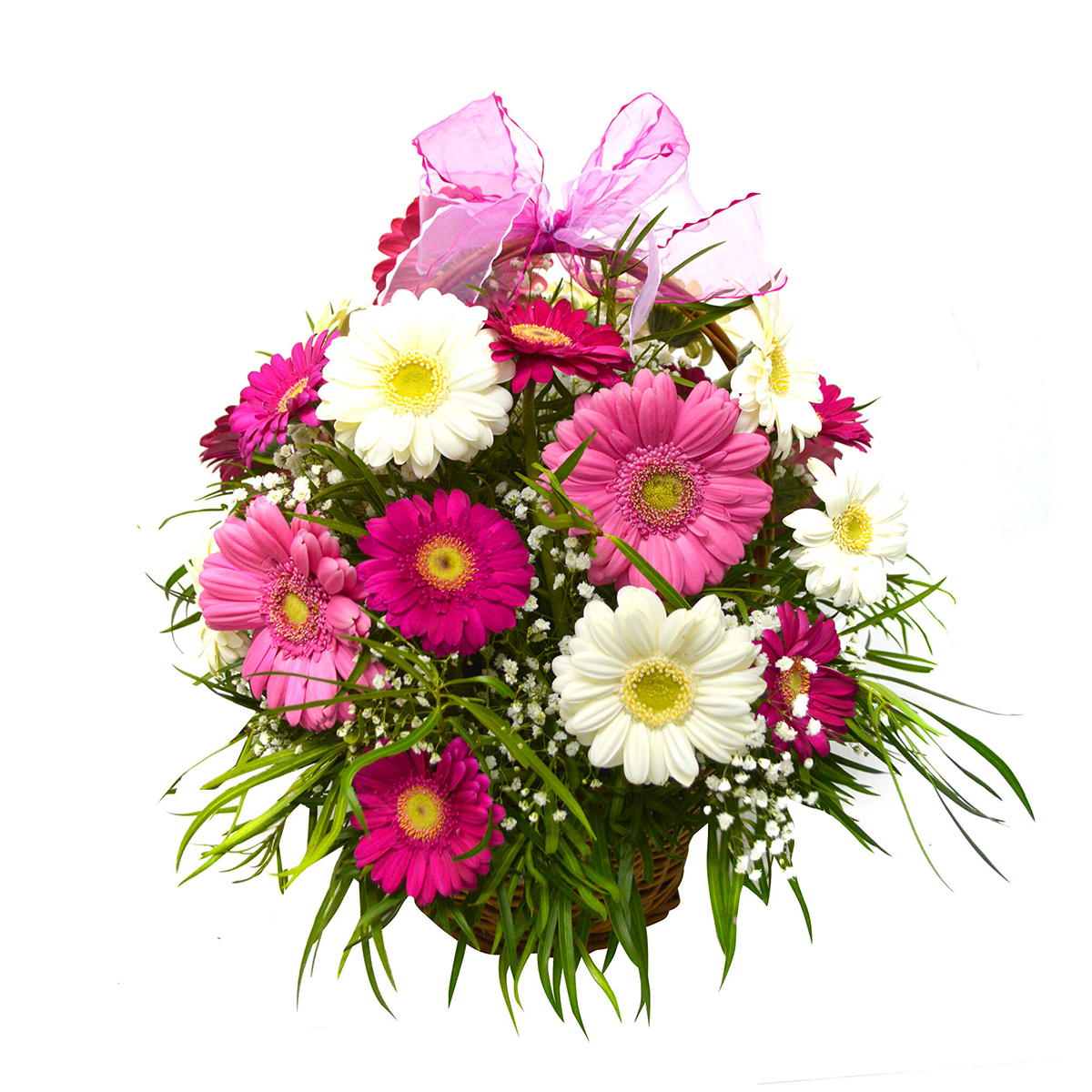 - Tierno canasto ideal para celebrar la bienvenida a la nueva princesa de la familia, con un mix de colores de: 10 Mini Gerberas fucsia, 10 Mini Merberas blanco, 10 Gerberas rosadas de Exportación, acompañado con Gypsophilia y follaje de pino chascon sobre un canasto mediano de mimbre adornado con cinta organza, instructivo para cuidado de las flores. No lo dudes y regala este hermoso canasto en este momento tan inolvidable que quedara marcado para toda la vida.