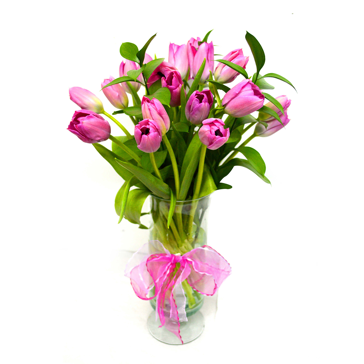 - Regale todo el color, energía y luz con estos deslumbrantes Tulipanes de Exportación. Este hermoso florero va confeccionado con 20 Tulipanes morado que iluminará la mirada de esa persona especial. Este precioso buquet va en un delicado florero de vidrio transparente decorado con una delicada cinta dorada. Incorpora un tarjetón donde usted puede escribir el mensaje que desee.