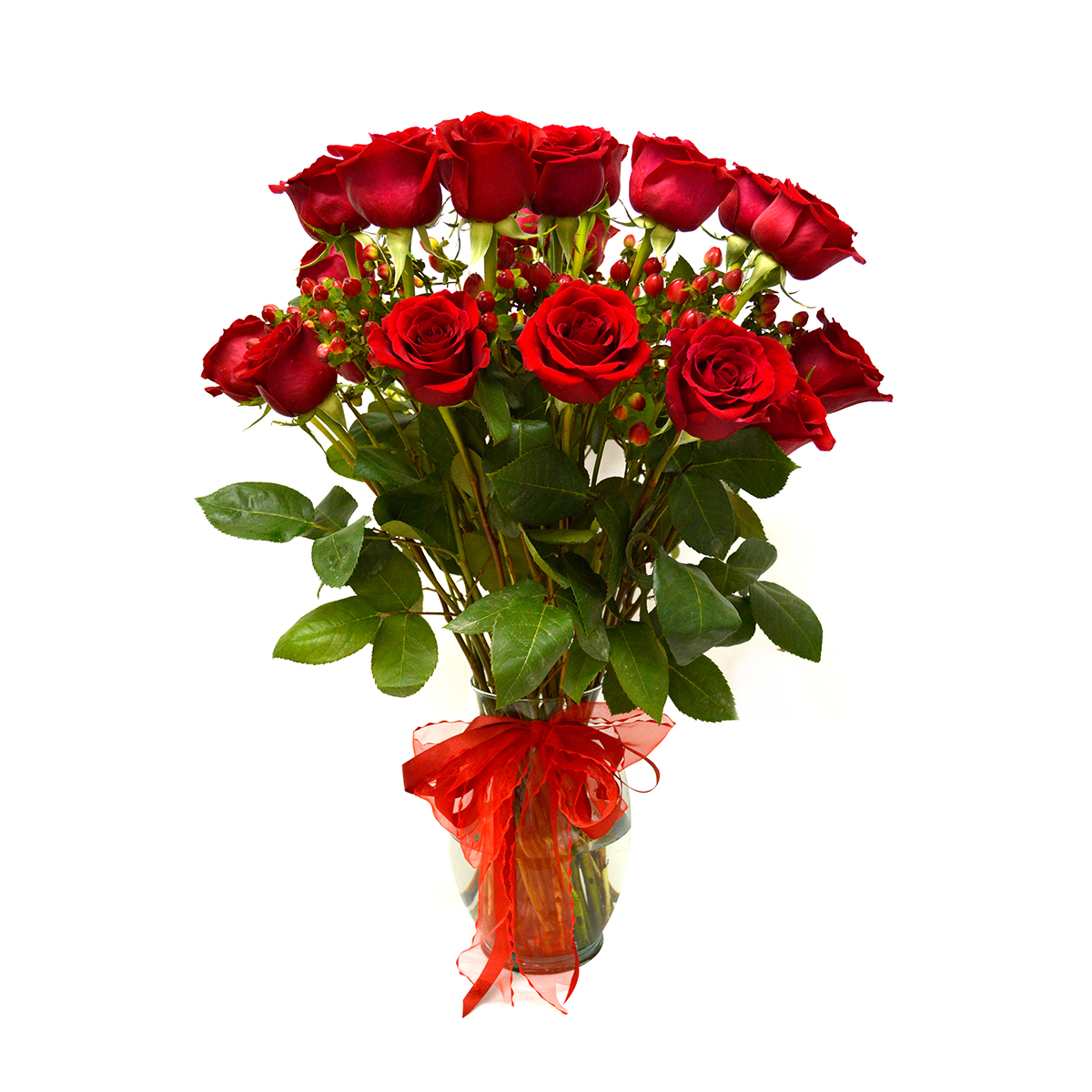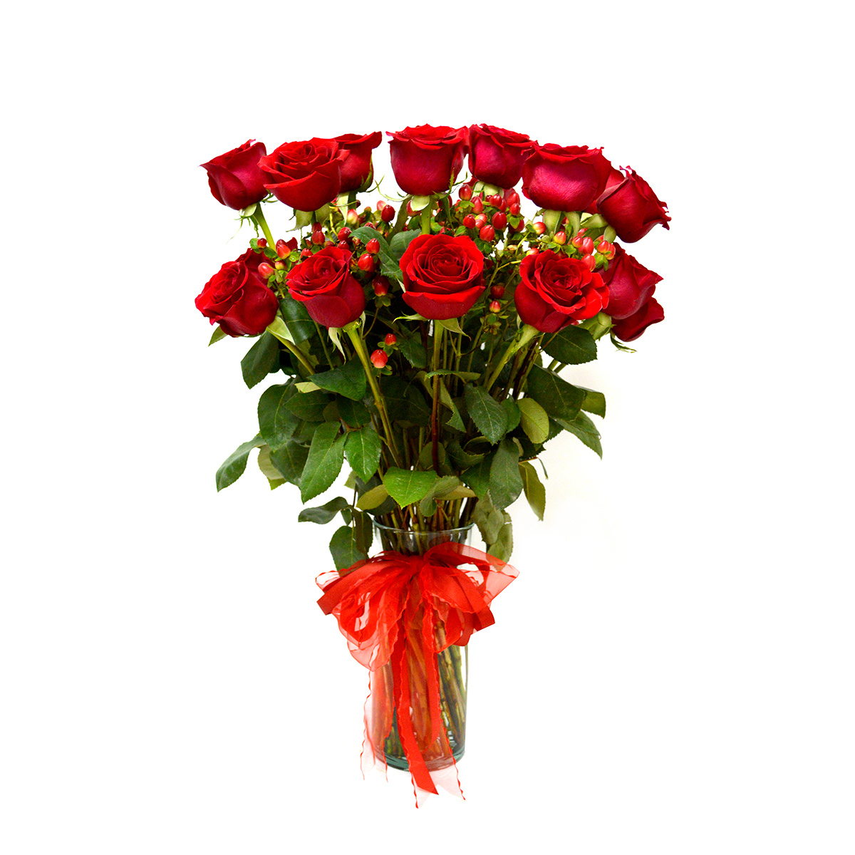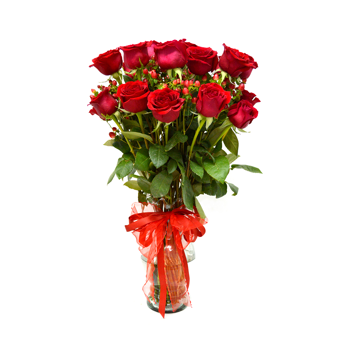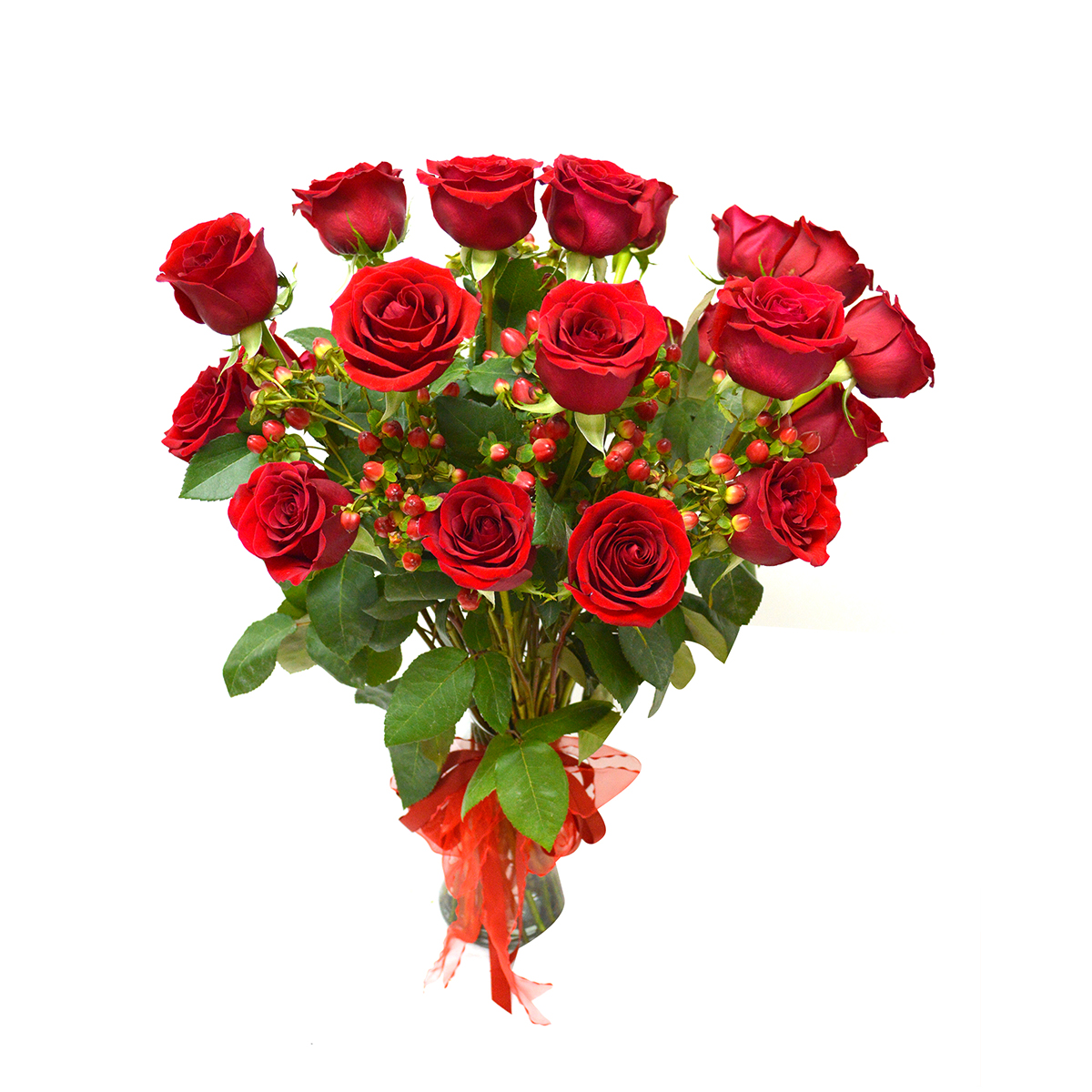 - Hazle pasar un momento inolvidable, con este apasionante Florero de 24 exquisitas Rosas rojas Ecuatorianas de colora elección, acompañada por 10 hypericum rojo. Este precioso buquet va en un delicado florero de vidrio transparente (Variedad de Jarrones) que hacen que esta imagen de armonía quede grabada en la memoria de quien la recibe, adornado con una hermosa cinta roja que realza la belleza de este destacado Jarrón.