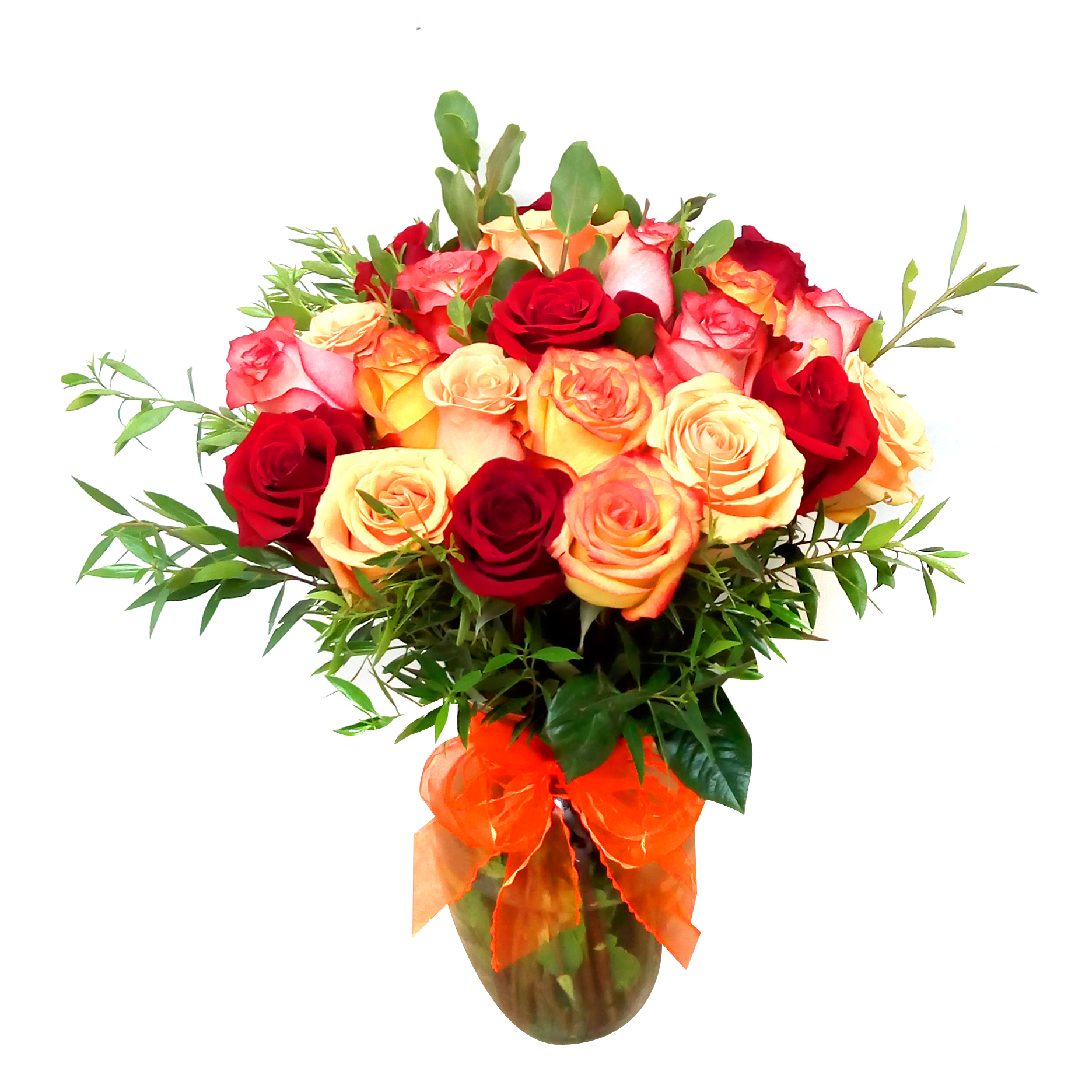 - Radiante Florero con 7 bellas Rosas rojas Ecuatorianas, 6 Rosas rosadas, 7 Rosas damasco, 5 Rosas Bicolor, follaje verde. Emiten un mensaje de halagadora elegancia para regalar en cualquier ocasión. Este impresionante ramo va en un delicado florero de vidrio transparente bellamente adornado con cinta rayada.
